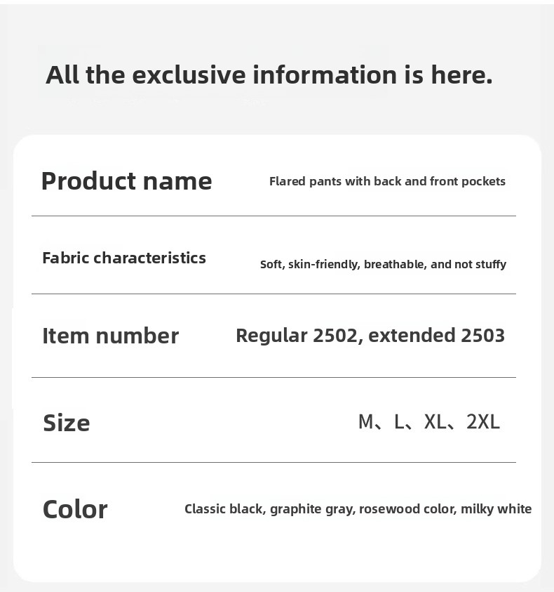 Floor-Length Bootcut - Elegant extended length with a stylish flare