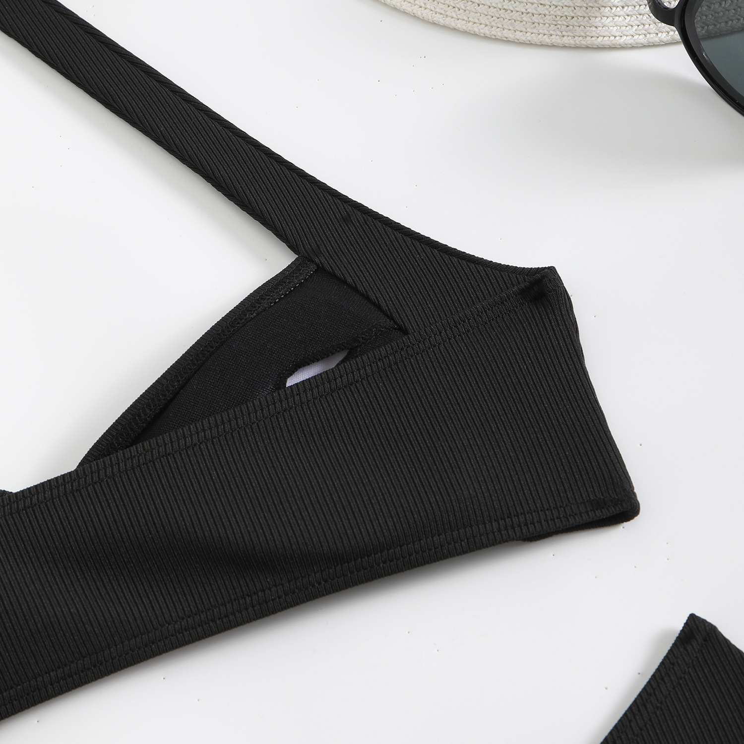 Features: Chest pad without underwire, solid color pattern